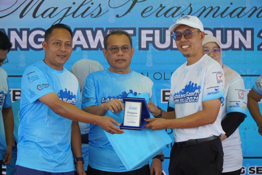 Majlis Pelepasan Peserta Larian Sawit Fun Run 2025 5KM dan 3KM disempurnakan oleh Pengerusi Jawatankuasa Pendidikan Dan Penerangan Negeri Johor, Tuan Aznan Tamin di Padang SK Felda Air Tawar 5, Kota Tinggi seawal pukul 8 pagi.