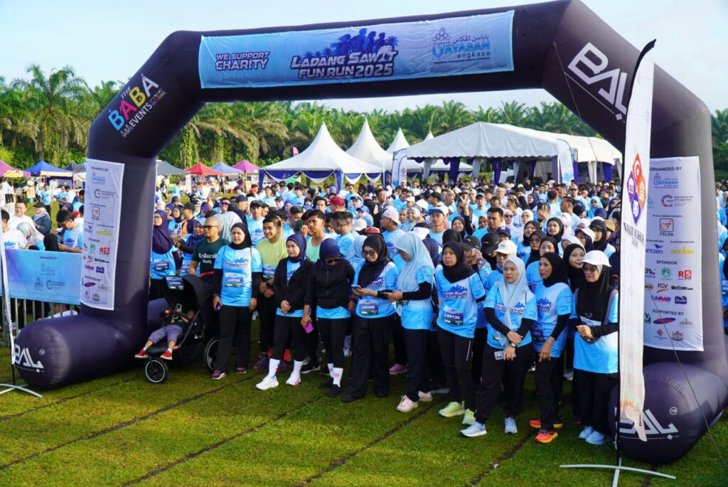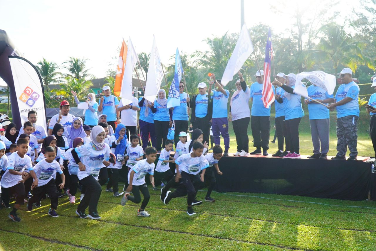 Kira-kira 2,000 peserta mengambil bahagian dalam acara Ladang Sawit Fun Run 2025 yang diadakan di padang Sekolah Kebangsaan FELDA Air Tawar 5, Kota Tinggi pada 14 September 2025.