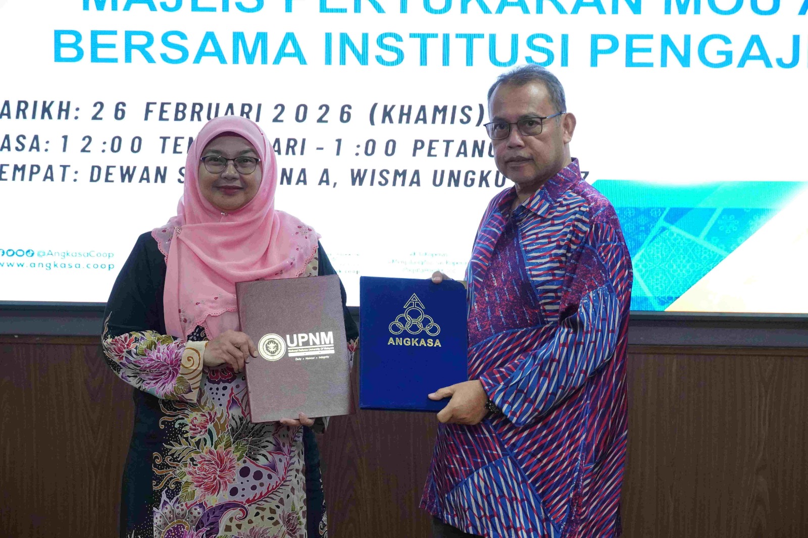 Hadir sama ialah Naib Canselor UMK, Dato’ Prof. Ir. Ts. Dr. Arham Abdullah, Naib Canselor UKKM, Dato’ Prof. Dr. Azali Mohamed, Timbalan Naib Canselor (Wakil NC) UNIMAIWP, Prof. Dr. Rosylin Yusof, Timbalan Naib Canselor (Akademik dan Antarabangsa) UPNM, Prof. Ts. Dr. Norhana Abdul Halim, Penolong Naib Canselor (Strategik Korporat) UM, Profesor Dr. Yahaya Ahmad, Timbalan Presiden ANGKASA, Prof Madya Dato’ Dr Abdul Rahman Abdul Razak Shaik dan Naib Presiden ANGKASA, Dato’ Haji Ibrahim Haji Abdullah.