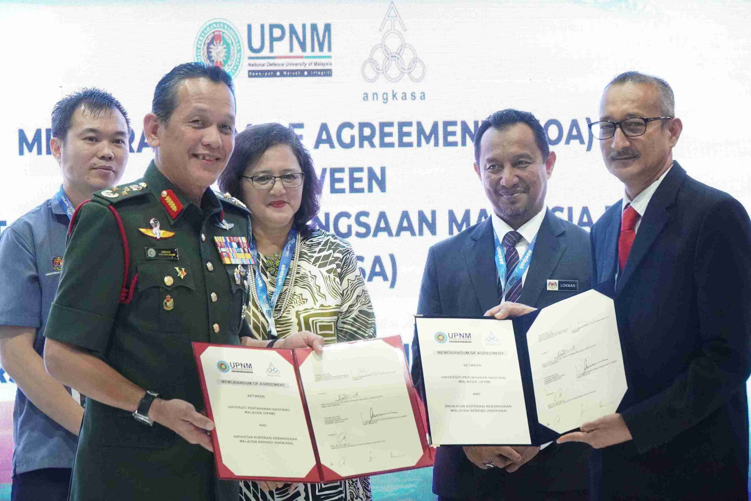 Pertukaran MoA itu disempurnakan oleh Timbalan Presiden ANGKASA, Prof. Madya Dato’ Dr. Haji Abdul Rahman Abdul Razak Shaik yang mewakili Presiden ANGKASA bersama Naib Canselor UPNM, Leftenan Jeneral Datuk Wira Arman Rumaizi Haji Ahmad. Majlis berkenaan turut disaksikan oleh Ketua Setiausaha Kementerian Pertahanan Malaysia, Datuk Lokman Hakim Ali serta Ketua Pengarah Pendidikan Tinggi, Datuk Prof. Dr. Azlinda Azman.