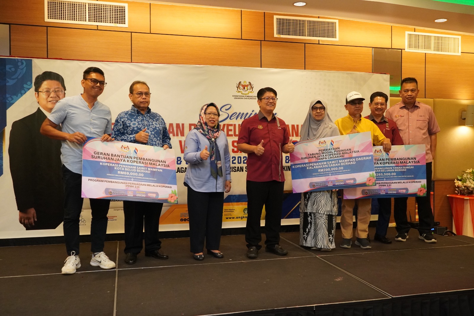 Majlis perasmian itu diakhiri dengan penyerahan cek cura Bantuan Pembangunan Suruhanjaya Koperasi Malaysia (SKM) berjumlah RM334,500.00 dan Pembiayaan Tabung Modal Pusingan SKM berjumlah RM200,000.00 kepada koperasi di Negeri Sabah.