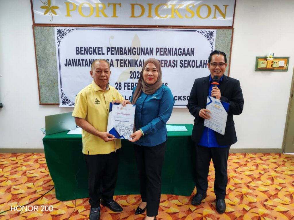 Encik Muhamad Hafiz Ahmad Nasir, Ketua Penolong Pengarah Bahagian Pendidikan dan Latihan Teknikal dan Vokasional, Puan Noorzalina Zainal Abidin serta Pengurus Seksyen Pendidikan, Bahagian Pendidikan dan Perniagaan, Kumpulan Pembangunan Koperasi, ANGKASA, Encik Abu Bakar Busmah.